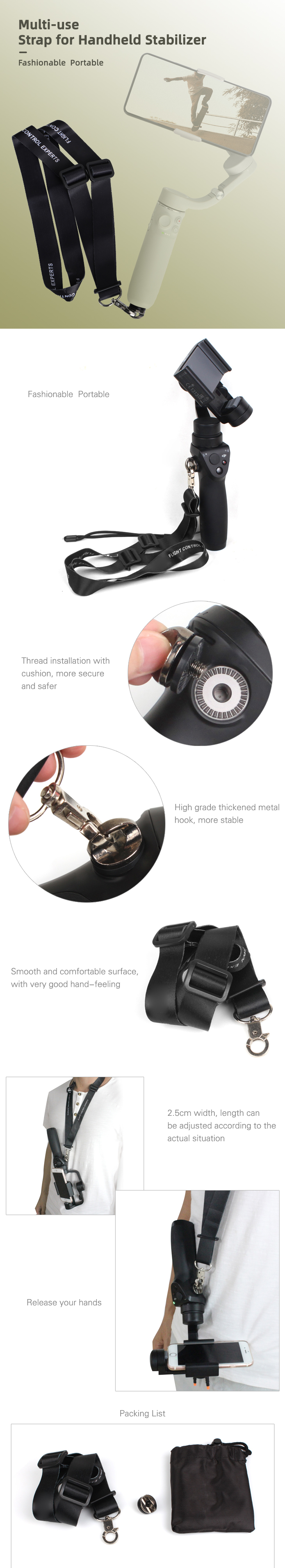 Neck Strap for OM 5/POCKET 2/Insta360 ONE X2/FIMI PALM 2/OM4 SE/OSMO Mobile 3 Handheld Gimbal