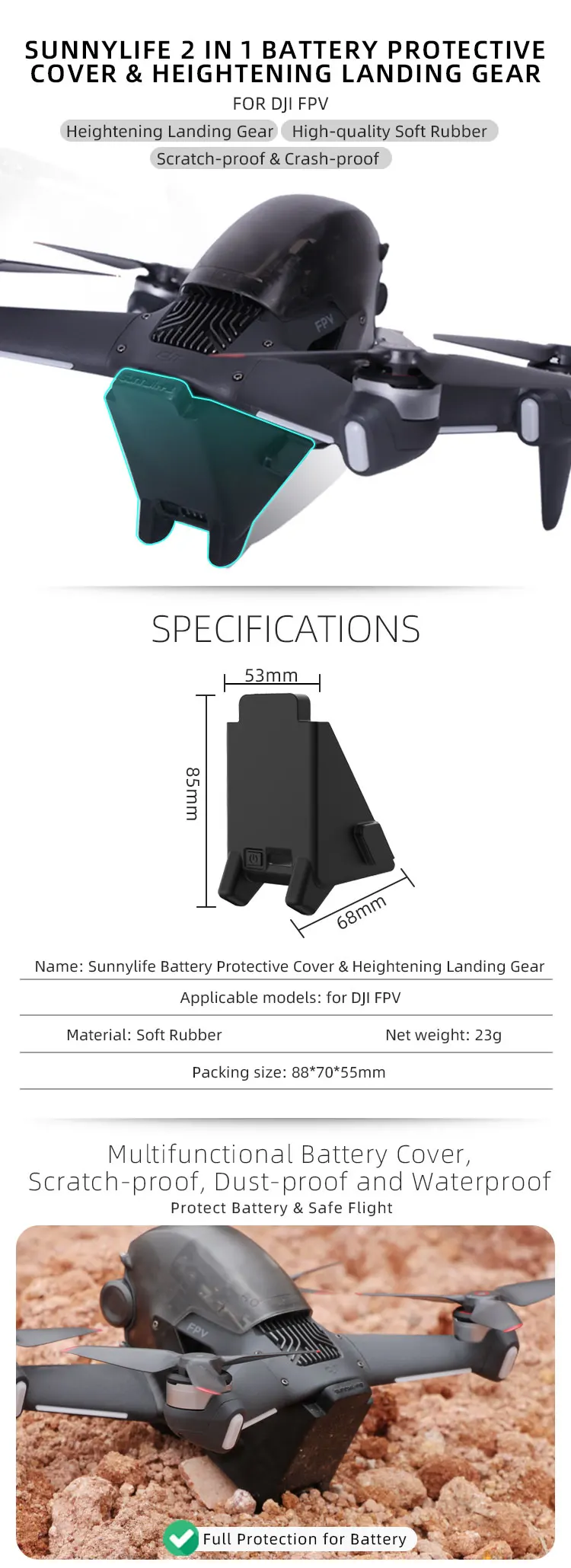 Sunnylife 2 in 1 Battery Protective Cover Heightening Landing Gear Crash-proof Silicone Cover for DJI FPV