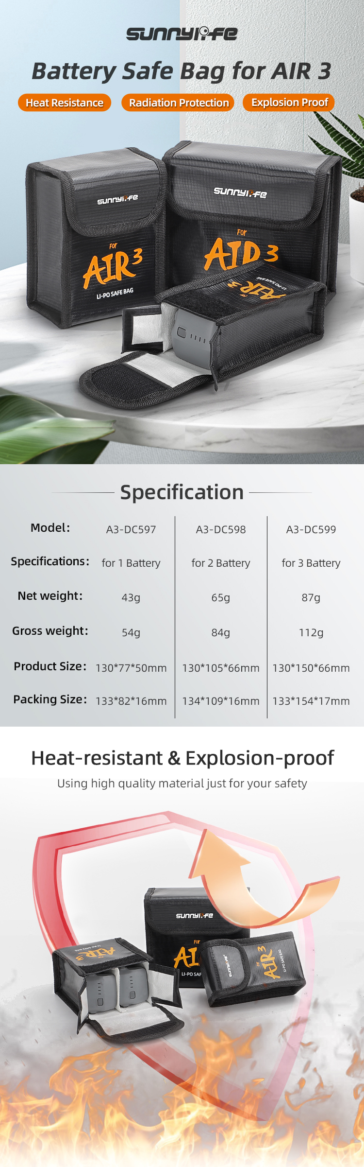 Sunnylife Battery Safe Bag Protective Li-Po Safe Bag Explosion-proof Accessories for AIR 3
