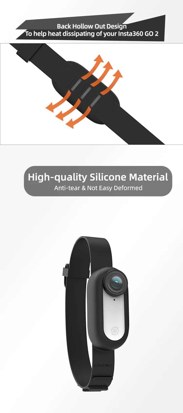 Sunnylife Camera Strap Silicone Protective Cover Wristband Palm Backpack Stripe Bicycle Strap Cat Collar for Insta360 GO 2