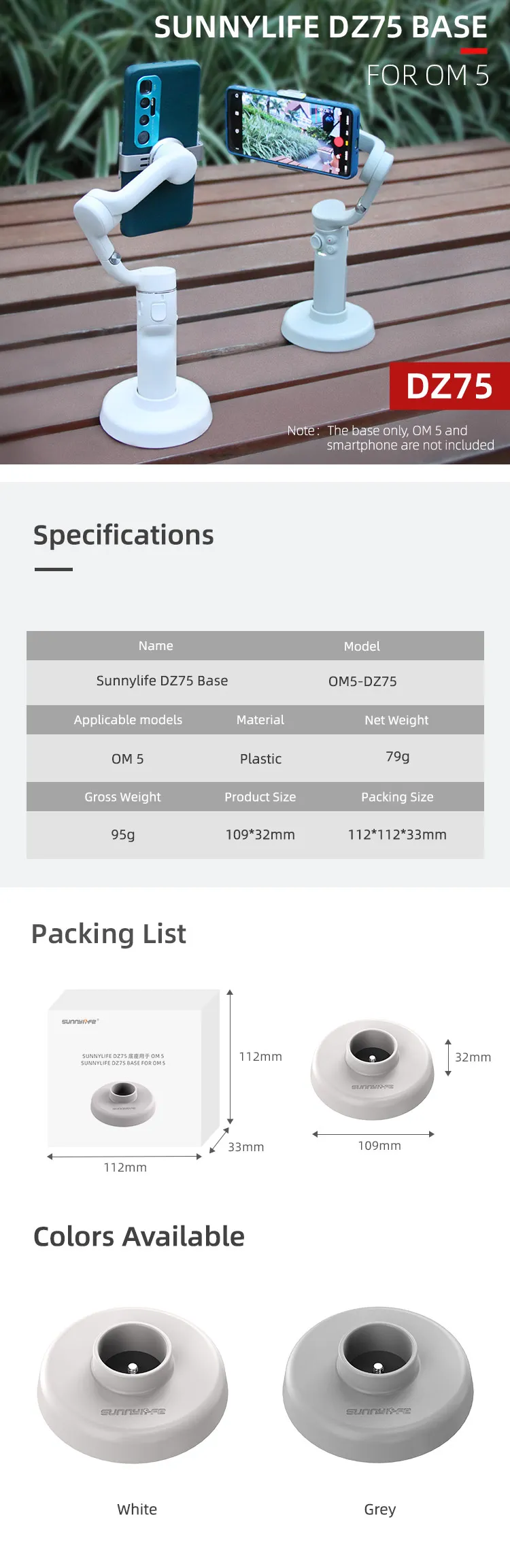 Sunnylife DZ75 Support Base Handheld Gimbal Desktop Base Stabilizer Mount Stand Accessories for OSMO Mobile 7P/7/6/OM 5