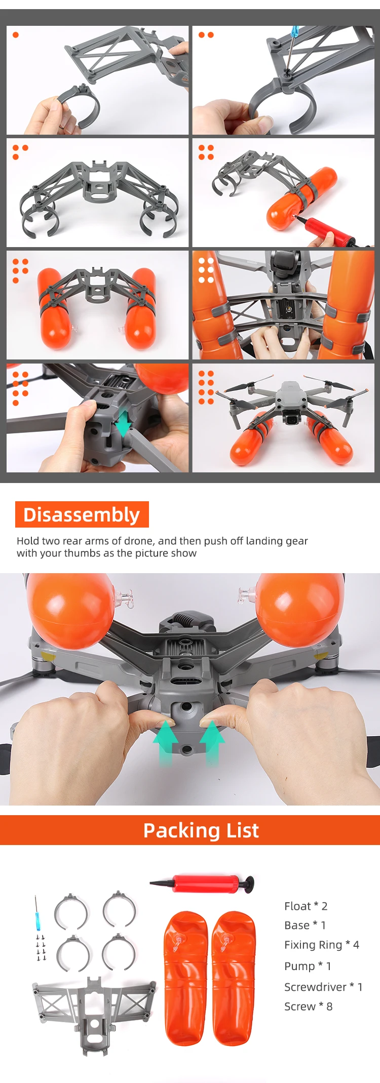 Sunnylife FT86 Float Landing Gear Water Inflatable Extender Landing Leg Heightening Kit Holder for Air 2S/ Mavic Air 2