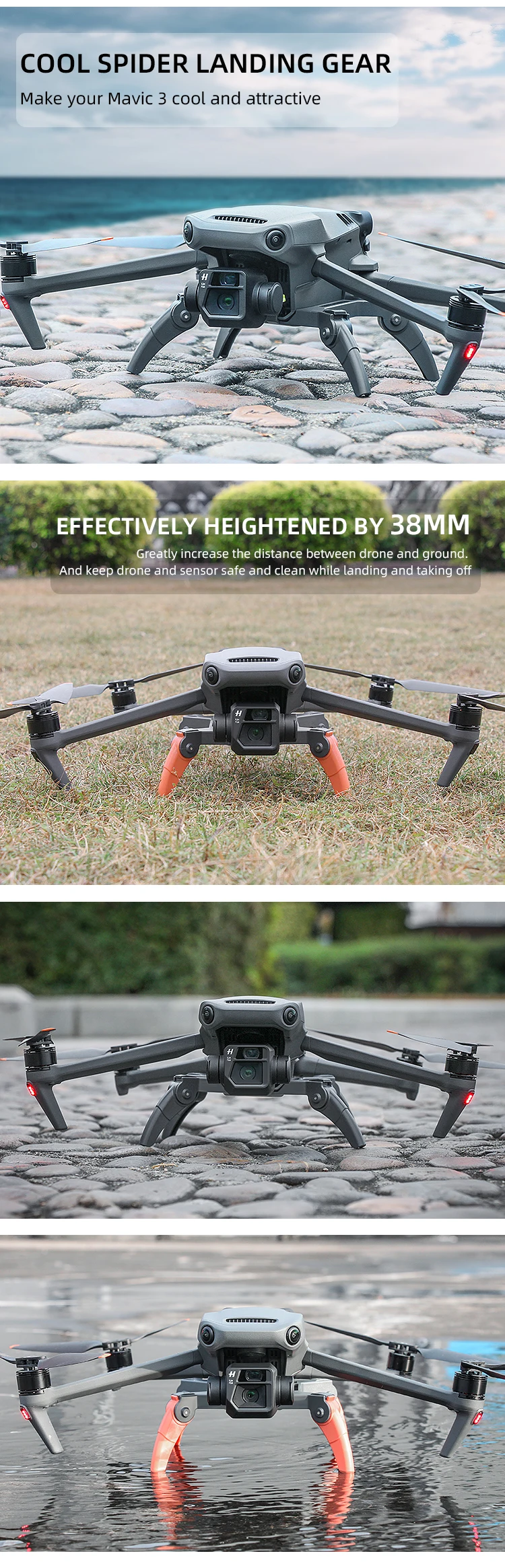 Sunnylife LG329 Spider Landing Gear Extensions Heightened Support Leg Protector Accessories for Mavic 3