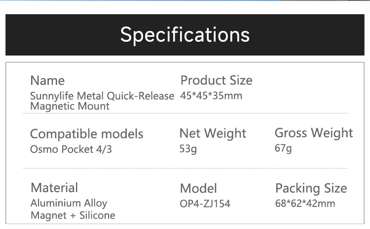 Metal Magnetic Mount for Osmo Pocket 4/3