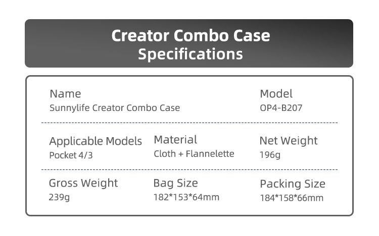 Sunnylife Mini Carrying Case Handbag Portable Travel Case Protective Organizer Standard Combo Bags Accessories for POCKET 4/3