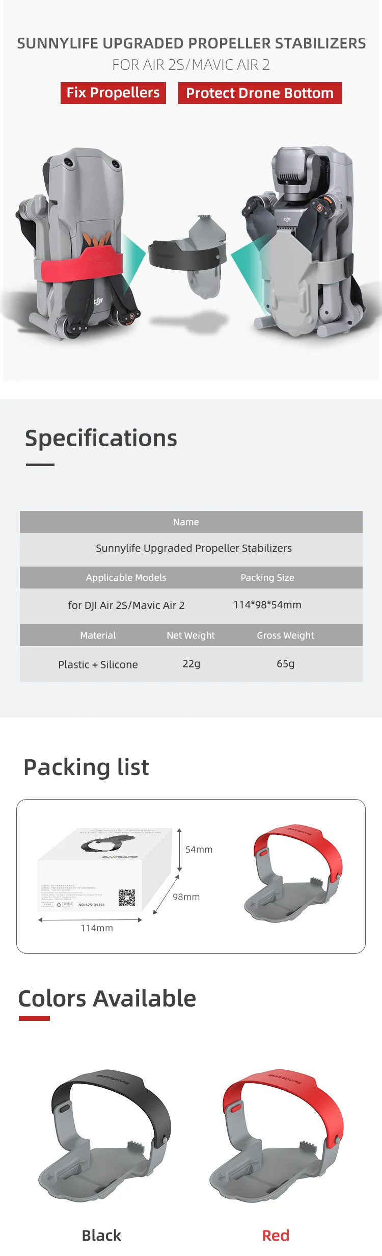 Sunnylife Propeller Stabilizers Dust-proof Protective Cover Props Fixing Accessories for DJI Air 2S/Mavic Air 2