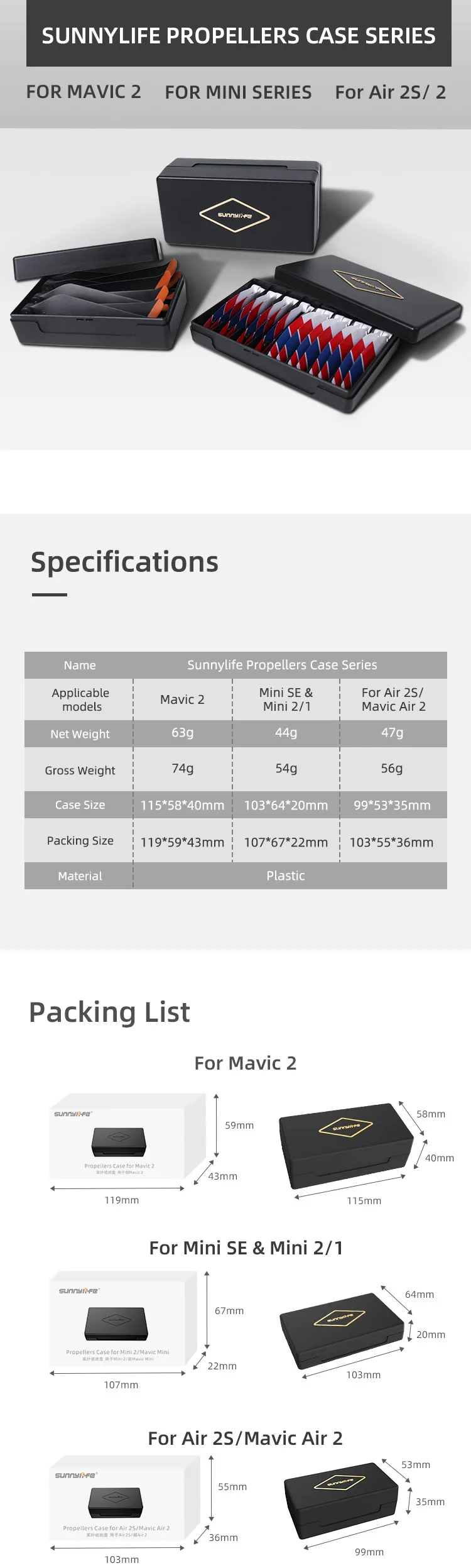 Sunnylife Propellers Box Portable Protective Case Accessories for AIR 3/Mavic 2/Pro/Mini SE/Mini 2/Mavic Air 2/Air 2S