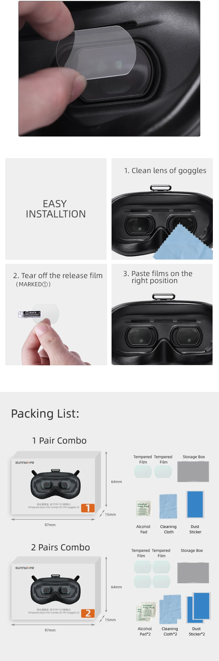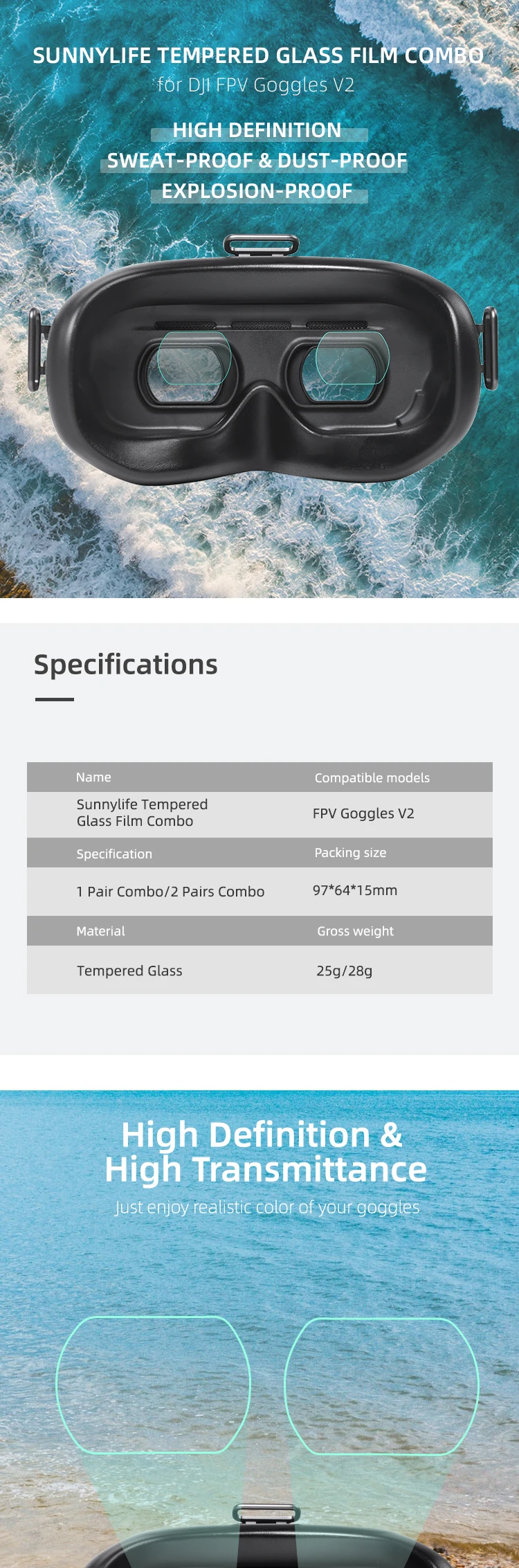 Sunnylife Protective Film Combo HD Tempered Glass Film Lens Protector Explosion-proof Accessories for DJI FPV Goggle