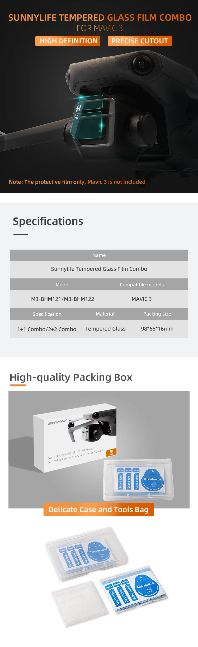 Sunnylife Protective Film Combo Tempered Glass Lens Film Protector Accessories for Mavic 3