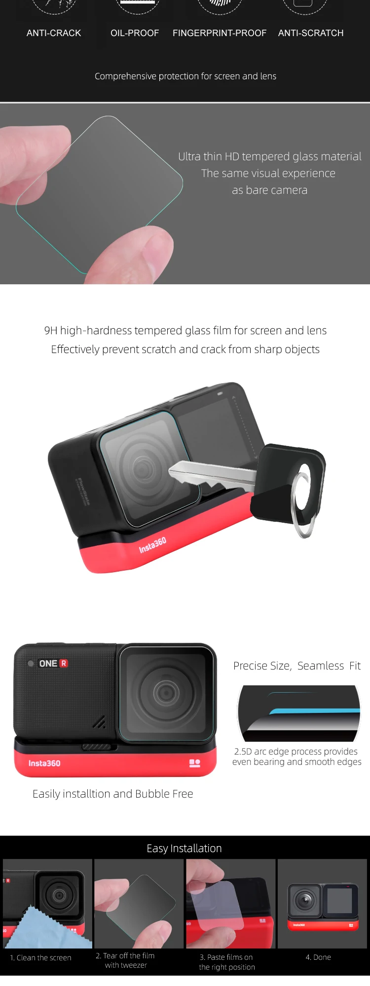 Sunnylife Screen Film 4K Lens Film Tempered Glass Film Set for Insta360 ONE R