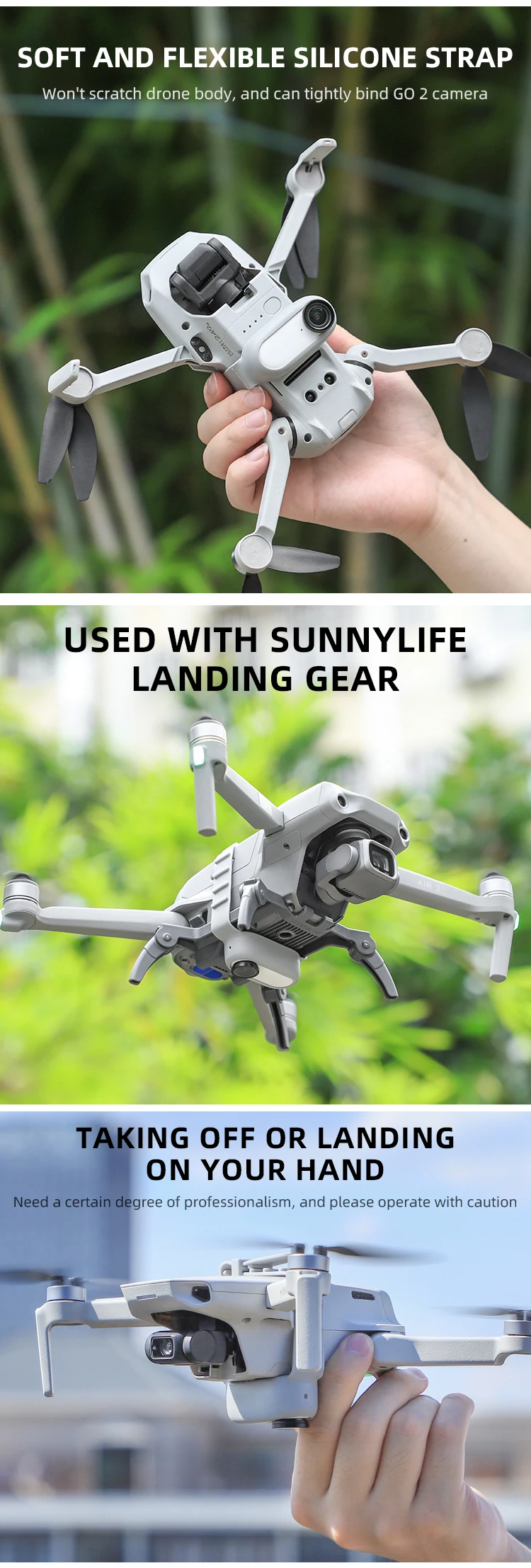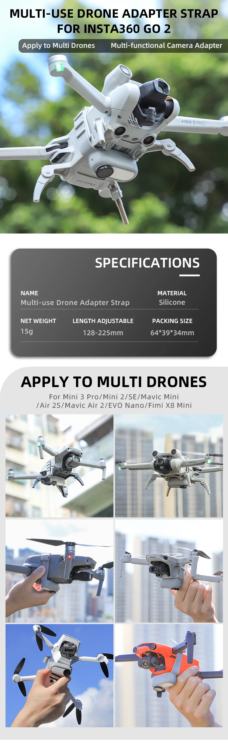 • Sunnylife Insta360 GO 2 Adapter Strap Multi-use Drone Holder Silicone Band Mount for Mini 3 Pro/ Mavic Mini/ Mavic Air 2