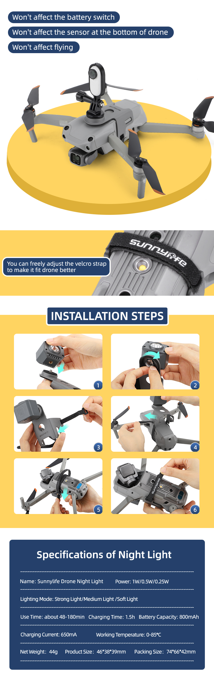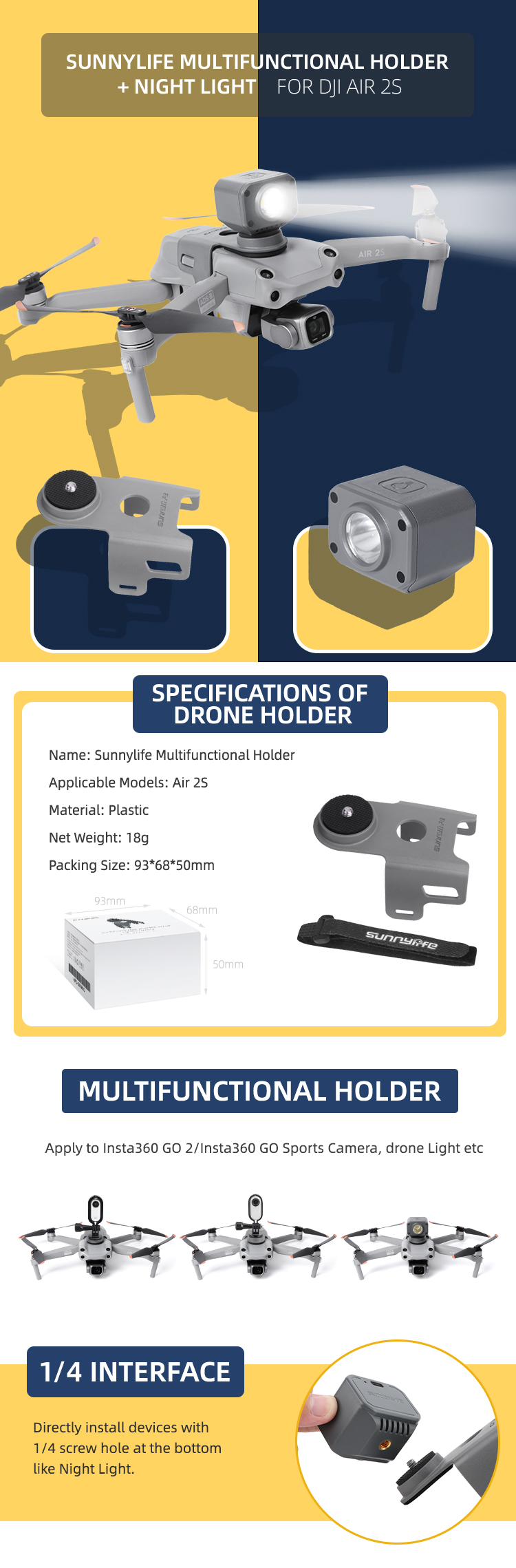Sunnylife Sports Camera Holder Night Light Bracket Navigation Spot Lamp for Air 2S for Insta360 GO 2/1 Camera Holder