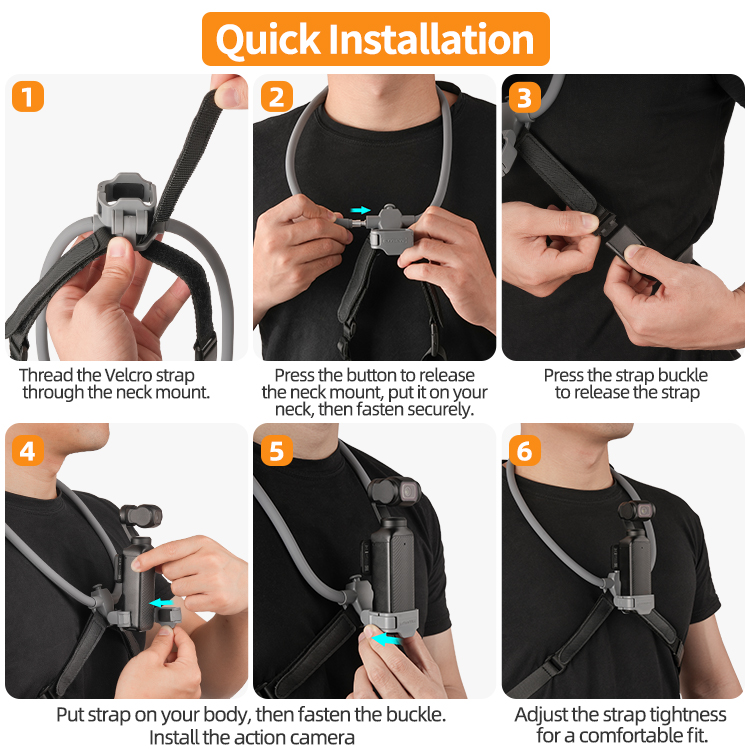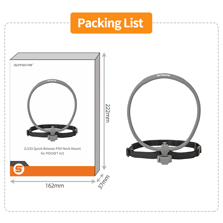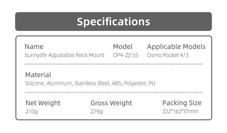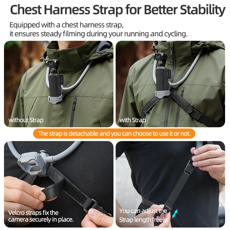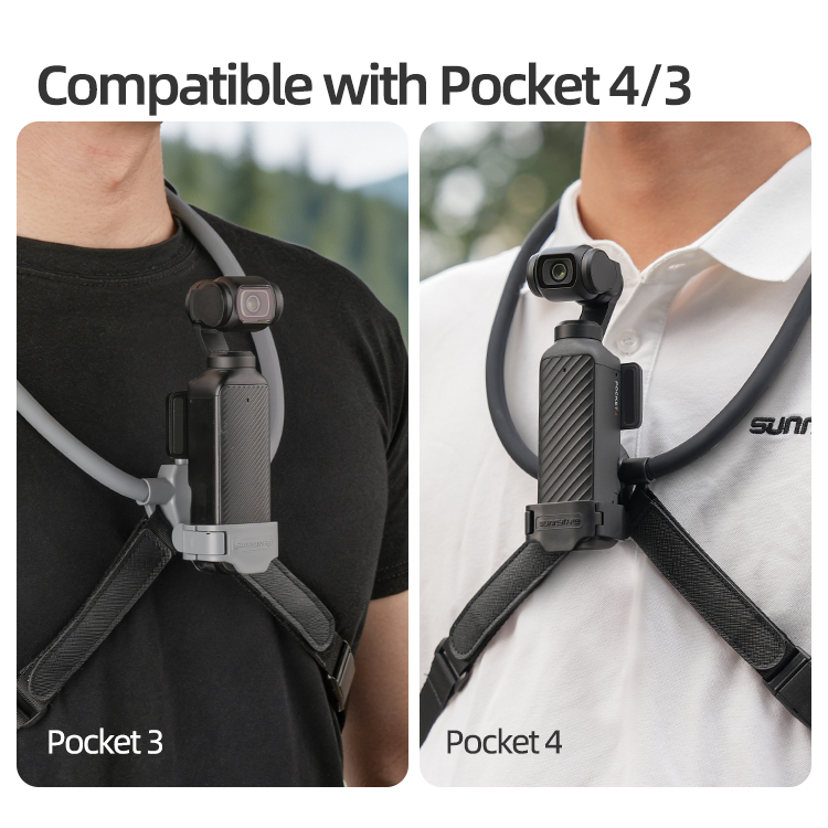 Sunnylife Adjustable POV Neck Mount Hand Free Video Vlog Neck Selfie Holder with Body Strap for Pocket 4/3